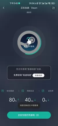 5、选择完毕后,即可启动游戏并开启加速功能。