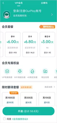 6、倘若您期望获得更为高速的加速服务,不妨考虑充值成为OurPlay的会员。