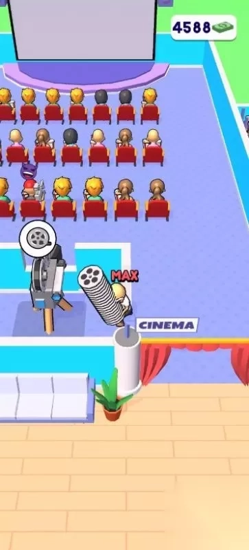 1、研习观众喜好与市场趋势,优先排片热门类型影片,合理安排员工班次,操作简单直观,连续满座观影触发连锁收益。