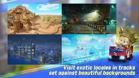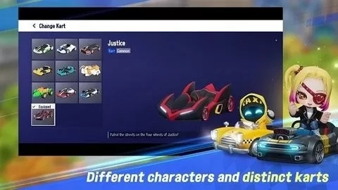 2、很多可爱的卡通人物形象和各种不同外观的卡丁车自由选择,彰显个性。