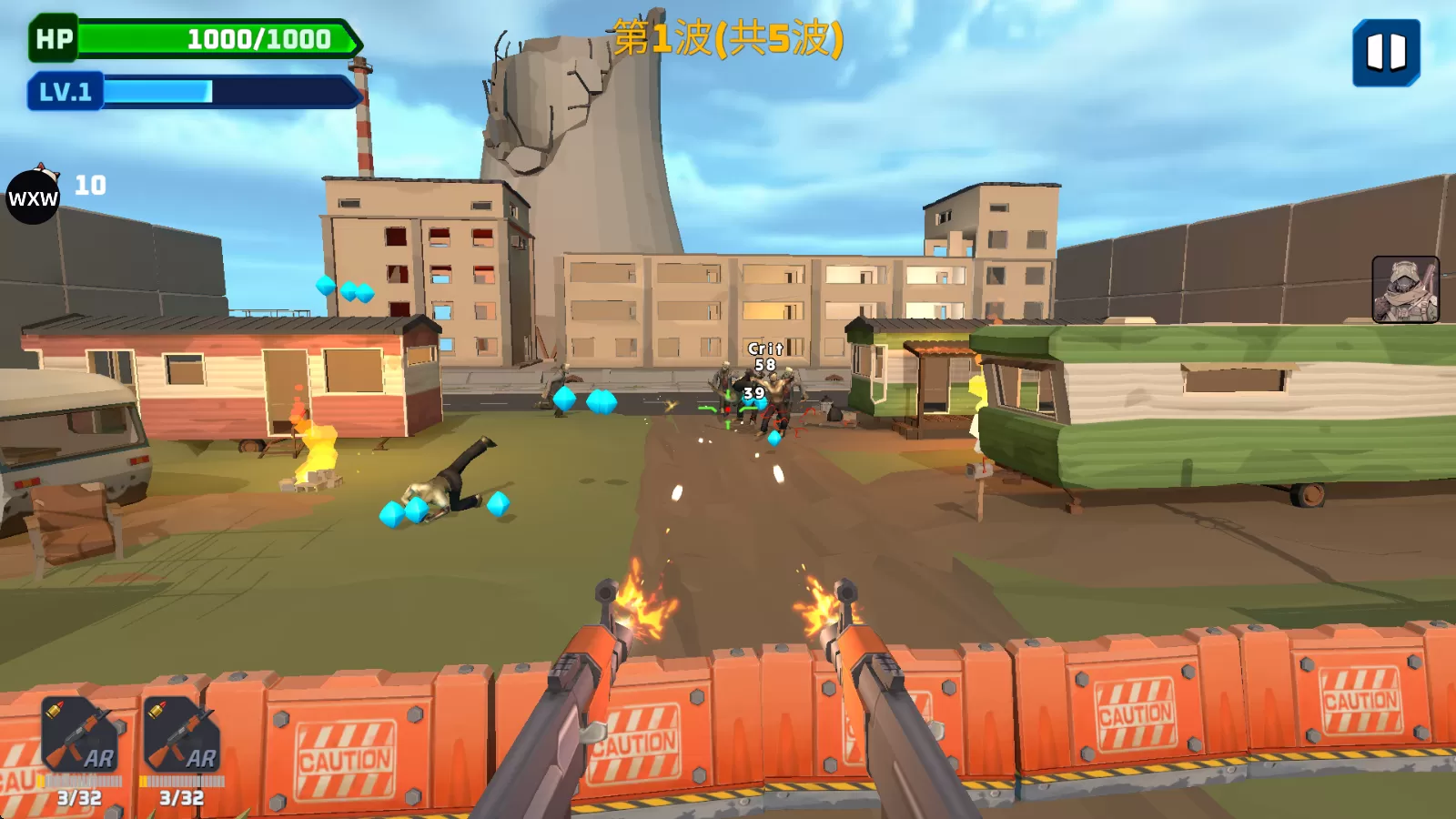 3、当成功击杀僵尸后,会掉落蓝色的经验,获取这些经验能够提升角色等级。