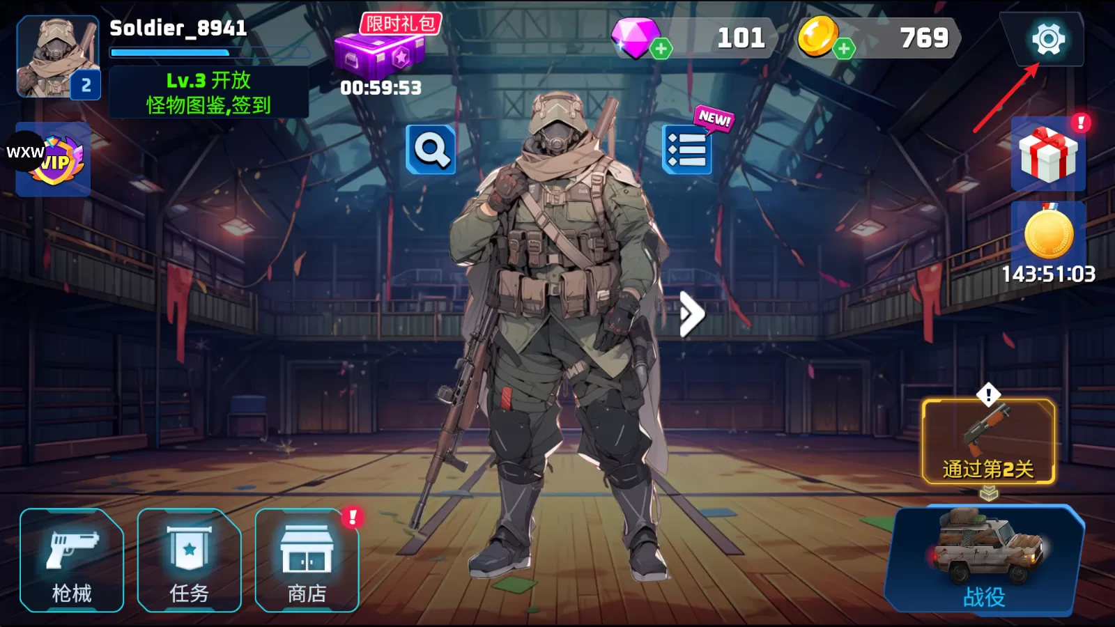 1、于游戏里,点击右上角的齿轮图标,即可进入设置界面。