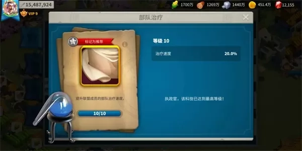 而且,这个技能还可以配合游戏机制,实现快速治疗伤兵的目的。中后期打架时,我们治疗伤兵往往需要很长的时间,要花费大量的加速。如果采取一部分一部分治疗的话,就可以很快治疗好你的伤员,例如我们伤了很多兵,需要一天才可以治疗好,如果我们分批次治疗,一次只治疗一小时的兵,配合联盟成员的帮助可以做到秒治疗的效果。