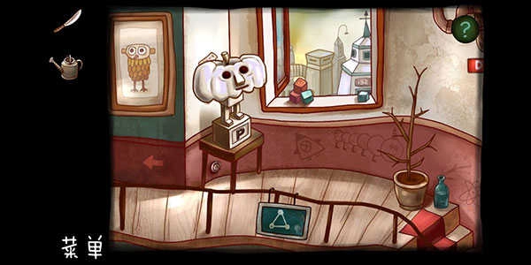 前往右侧场景,解开左下角的电路谜题后能拿到水壶。拿着水壶去楼下鱼缸接水,再回到这个场景给植物浇水,这样就能得到苹果喂小飞虫,获取钥匙来解锁机器人。