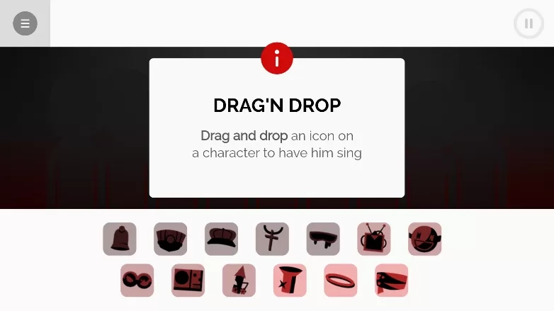 拖拽步骤:把角色(像“黑帽子”)以及装饰物(例如“铜锣”“雨伞”)拖到音符编辑区的轨道之中,每个模块都对应着特定的音效(比如鼓点、电子琴声)。