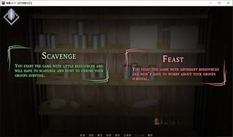 点击“START”后,你就会沉浸在精彩纷呈的剧情里。要是想体验充满惊险的生存挑战,就选择“SCAVENGE”;要是想享受资源充裕的轻松游戏模式,那就选择“FEAST”。