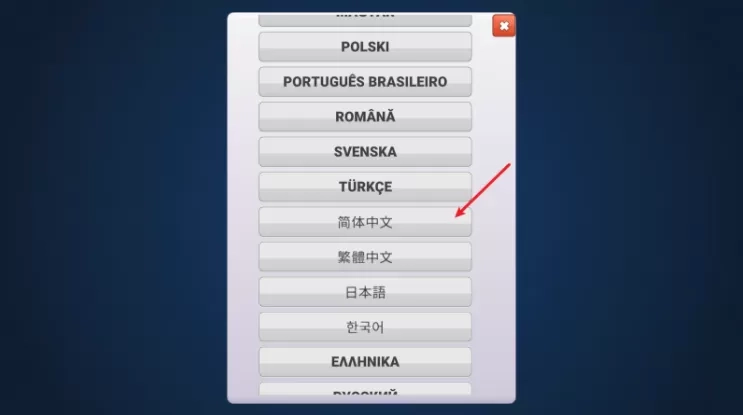 4、然后找到简体中文,点击切换即可,切换后需重新启动游戏。