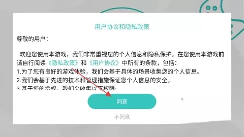 1、第一步,在用户协议与隐私政策页面,点击【同意】按钮,接受相应条款,从而顺利开启登录流程。