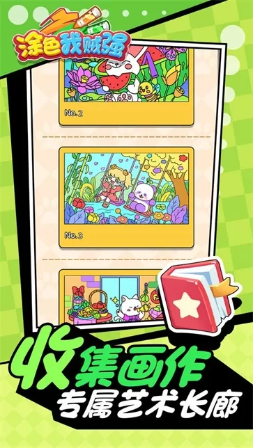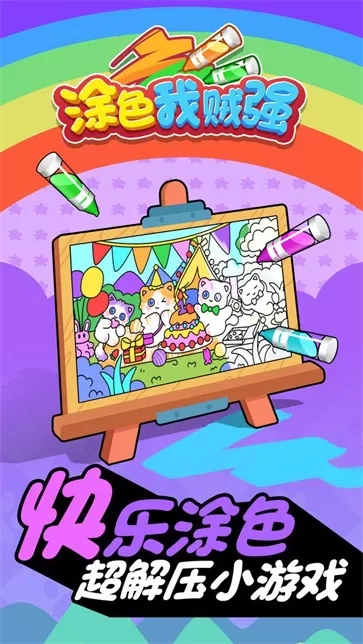《涂色我贼强》是一款超休闲且耐玩的经典涂色绘画解压闯关小游戏。若你是绘画爱好者,那在这里就能完成更多趣味画作。在最新的《涂色我贼强》安卓手机版游戏中,运用了小清新又可爱的Q版卡通画风,为玩家准备了海量充满童趣的画作。其涂色操作轻松简单,玩家能尽情施展自己的艺术天赋,进行各类不同色彩的组合搭配。