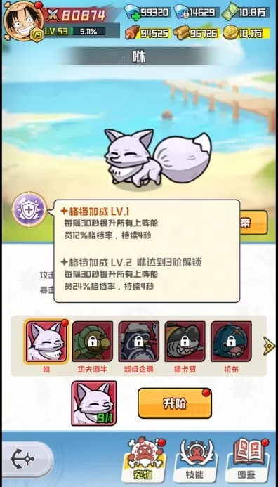 3、每激活一个不同的宠物在相应图鉴系统也有属性加成,各位船长们记得不要遗漏了