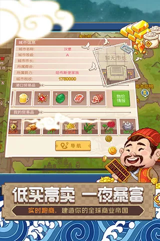 实时跑商,自由贸易,商品的价格将根据真实的物品供需关系动态变化,而你的经商秘籍就是随时关注商品动态,及时买入卖出。