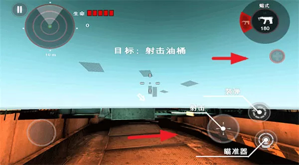 4、右下角的按键则是装弹、射击,以及瞄准,还能不断的调增视线。