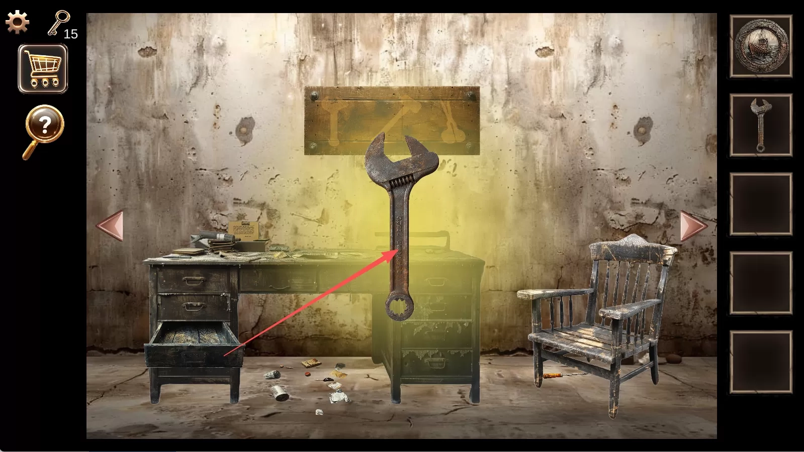 2、认真的搜索房间,获取一些有用的道具,比如在抽屉当中找到扳手。