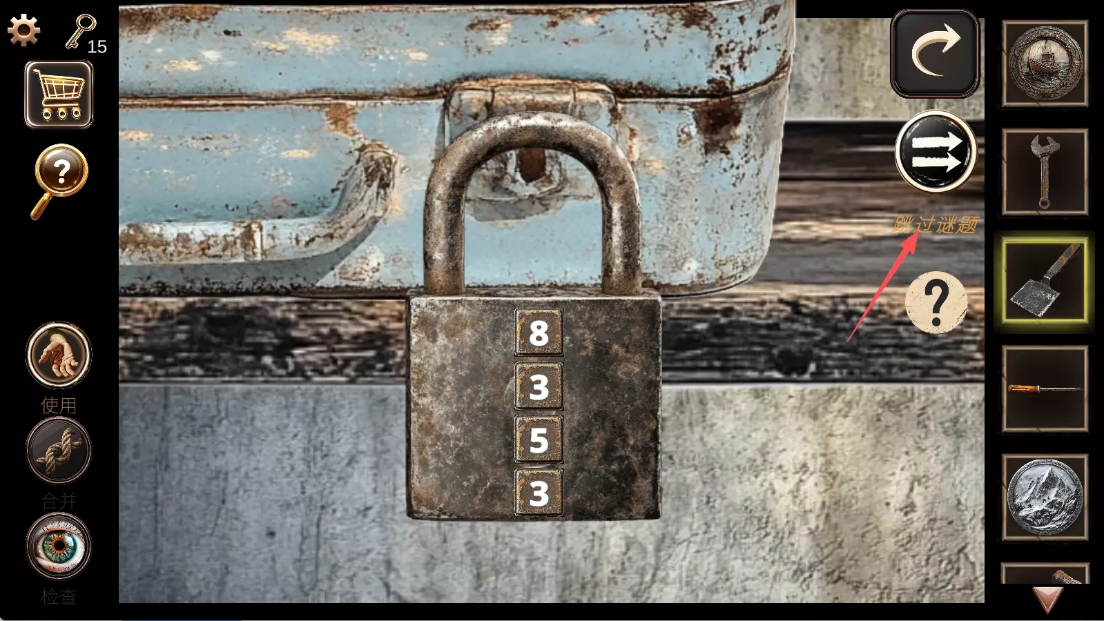 4、当遇到解不开的谜题或者密码的时候,可以点击跳过谜题按钮。