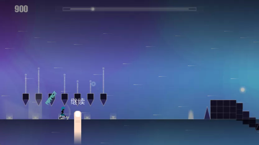 4、除了这些功能键,小编再讲讲左下角的双箭头按钮,按下它能使角色在一定时间内免受尖刺等陷阱伤害。玩家在跑酷时,要触碰发光的圆圈,以此收集上方的光源,直至进度条达到满格状态。