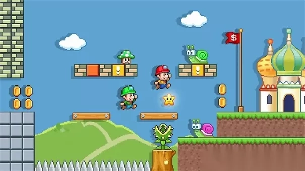 1. 复古像素视觉再现:以16位像素风格重现经典的马里奥世界,砖块碰撞、火焰发射等特效完美复刻FC主机的质感。在Boss战部分,融入高清动态渲染技术,既保留怀旧情怀,又极具视觉冲击力。