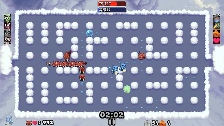 收集、升级、选择。玩家在移动过程中,要躲避猫咪的追击,与此同时收集积分点,这些积分点可用来解锁强化选项,比如提升弹幕防御能力、加快移动速度,或者获取特殊技能。每次升级都会给出多个选择,像影子分身能够在短时间内分散敌人的注意力,能量护盾则可以抵挡一次致命攻击,这些选择会直接对后续关卡的难度以及生存概率产生影响。