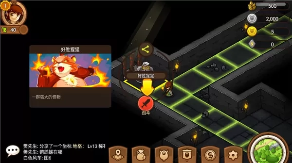 5、冒险途中会遭遇各类怪物,点击“战斗”即可展开对战。