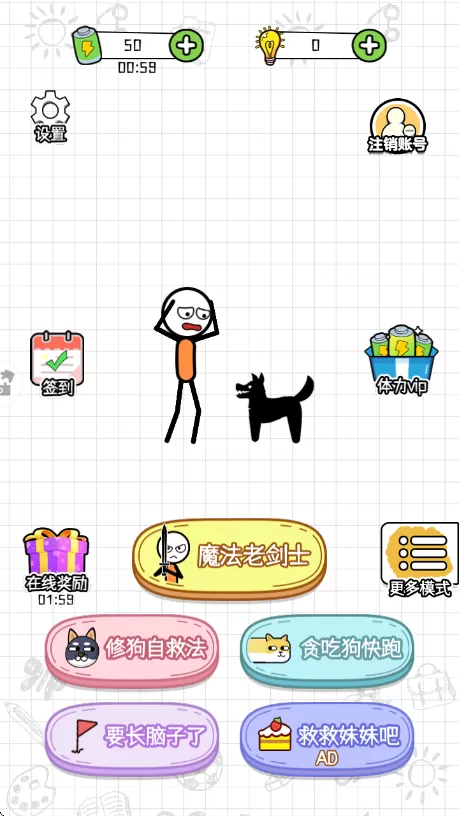 1、游戏中的黑白火柴人造型萌趣可爱,搭配了夸张搞怪的动作设计,瞬间抓住玩家目光,让人忍不住想要一探究竟。