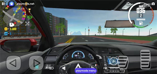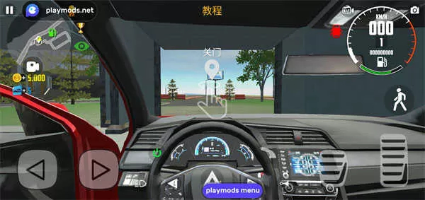 5、进入驾驶舱后记得手动关闭车门,通过屏幕下方的虚拟方向键和油门刹车组合来操控车辆行驶;