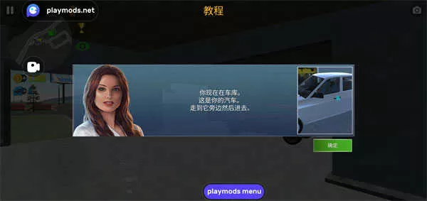 3、第一步是接近停放在前方的车辆,控制角色步行至车门位置;