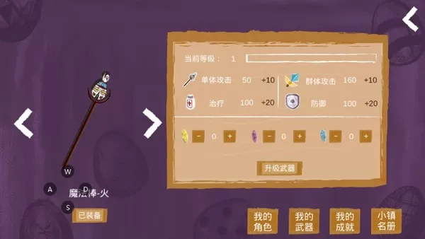 需协助小镇成员参与战斗,获取更多装备与武器,助力拯救这座魔法小镇。