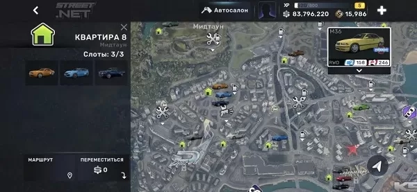 每一个房子可以容纳三辆车,车辆可以重复购买,但是现阶段无法卖出,房子需要自己消费扩容,如果地图上显示了0,代表你可以不消耗一分就可以快速传送回去,旁边的那个是导航,车库可以替换,如果点击车辆的话,会显示。
