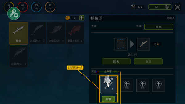 6、点击加速,可以快速捕捉鱼。