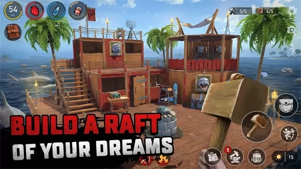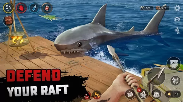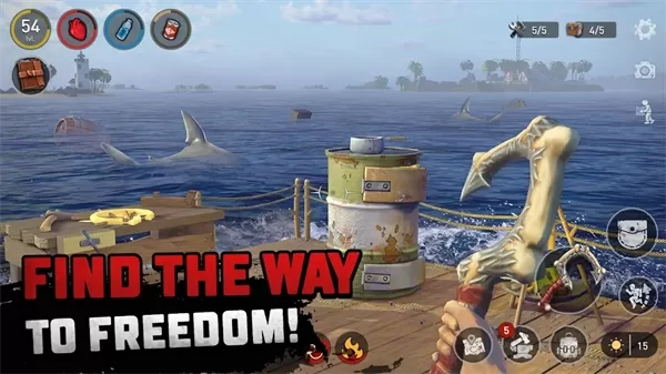 1. 身临其境般的岛屿生存冒险之旅开启,时刻警惕,小心躲避游弋在海上的鲨鱼,全力保护自己,确保能顺利存活下去。