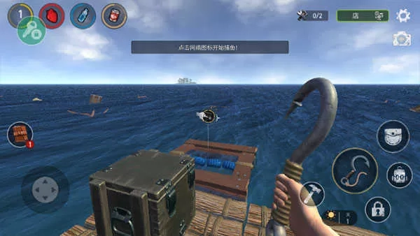 2、获取物资,制作武器,加固木筏或者建造堡垒;