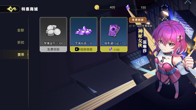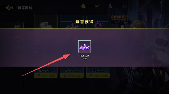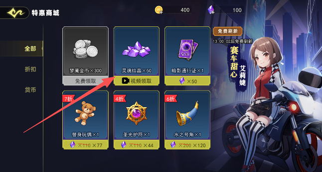 1、进入商城页面,点击视频领取购买灵魂结晶。