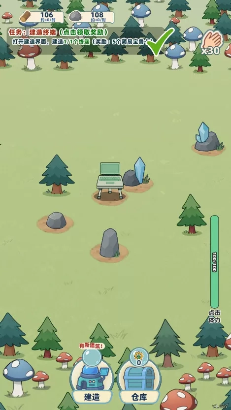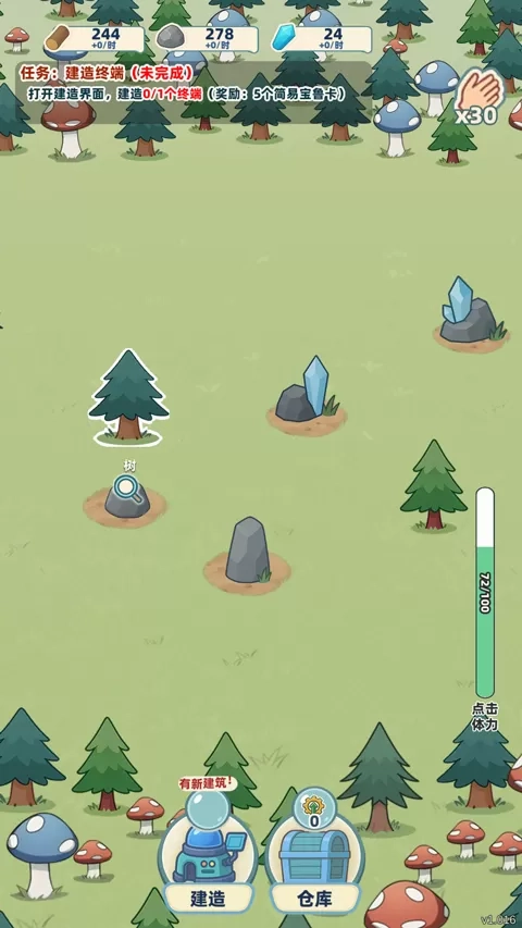 4、捕捉成功后,玩家可通过点击来收集资源,如木材、石头等。