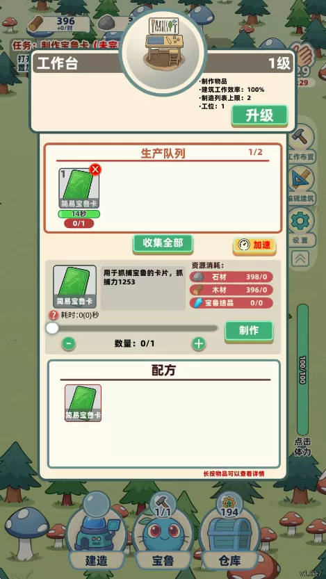 5、接着玩家可建造工作台,来制作宝鲁卡。