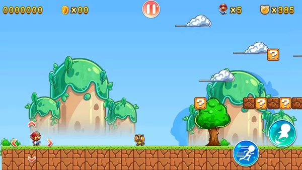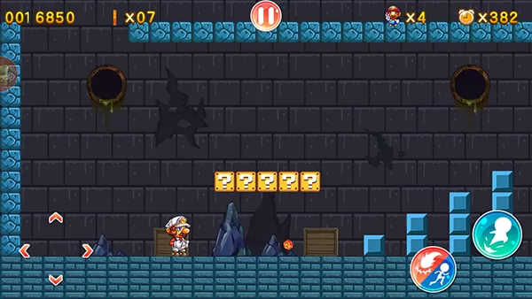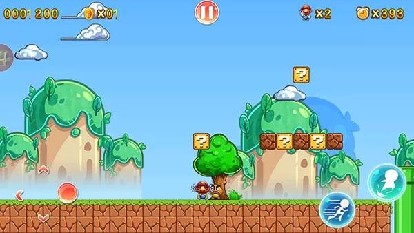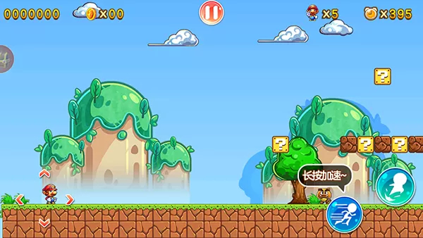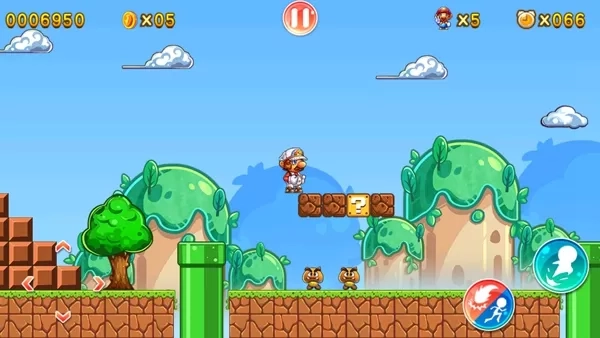 3、跳跃撞击游戏中的问号方块可以获得积分或者道具,蘑菇道具能让人物长大,鲜花可以获得射击能力。