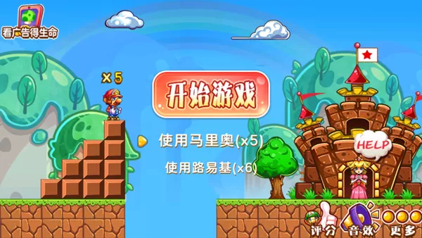 1、安装好超级玛丽最新版手机游戏,你可以选择角色,选择好以后点击开始游戏。