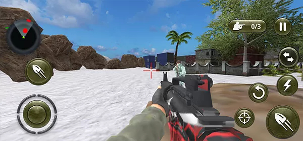 《山地狙击手射击3D》是一款第一人称FPS飞行射击类游戏,英文名为Real Comma ndo secret Missions 。玩家在游戏里将化身狙击手,执行各类任务,于不同场景展开狙击行动。狙击时务必留意命中敌人要害,不然容易暴露自身方位,因此需提升狙击与操作能力。此外,游戏为玩家准备了多种游戏模式,像闯关模式、悬赏支线等,通过这些模式玩家能获取丰厚奖励,也可通过升级武器来应对挑战。