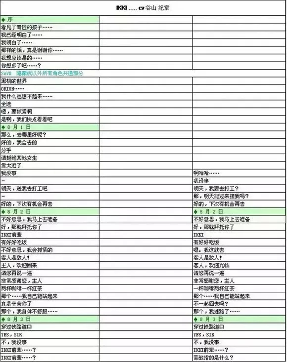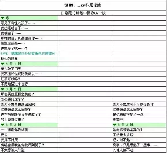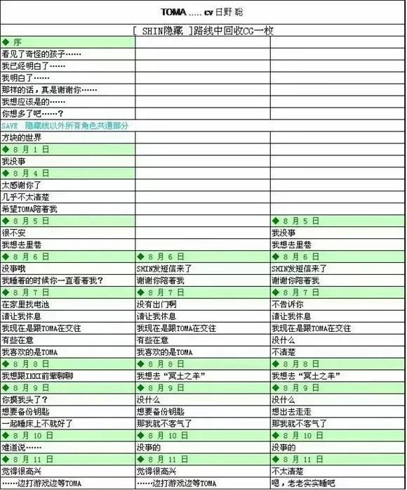 例如【SHIN】的最后一个结局,表格中写到接SAVE*,指的就是从【SHIN】8月23日那个存档开始。