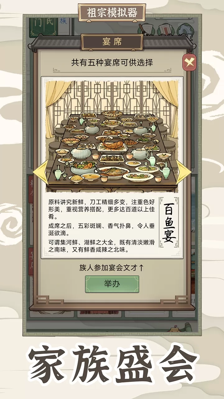 创建自己的宗族,招募族人,设立家族规矩,培养家族文化,让宗族成为游戏中的一股强大力量。
