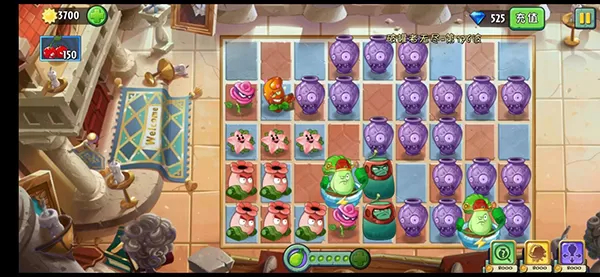 踏入游戏后,第一步要在3块相连的瓷砖上种下带有装扮的原始向日葵,这种向日葵能够产出阳光与金币。当成功种好2排向日葵后,阳光便能持续不断地生成。倘若你的植物等级不算高,在种植向日葵的过程中,最好同步种植一些具备攻击能力的植物,以此防范僵尸的来袭。