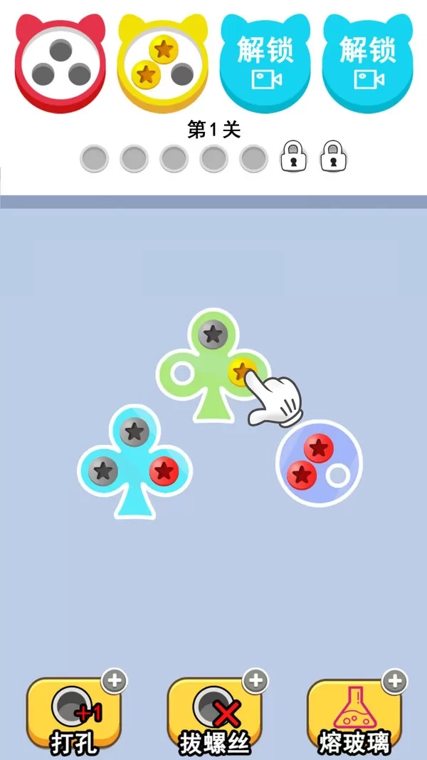 2、前期关卡的螺丝数量较少,很适合新手用来熟悉操作流程。随着关卡推进,到了后期,螺丝数量增多,并且融入了多层顺序限制以及复杂的解谜元素,难度也随之逐步提升。