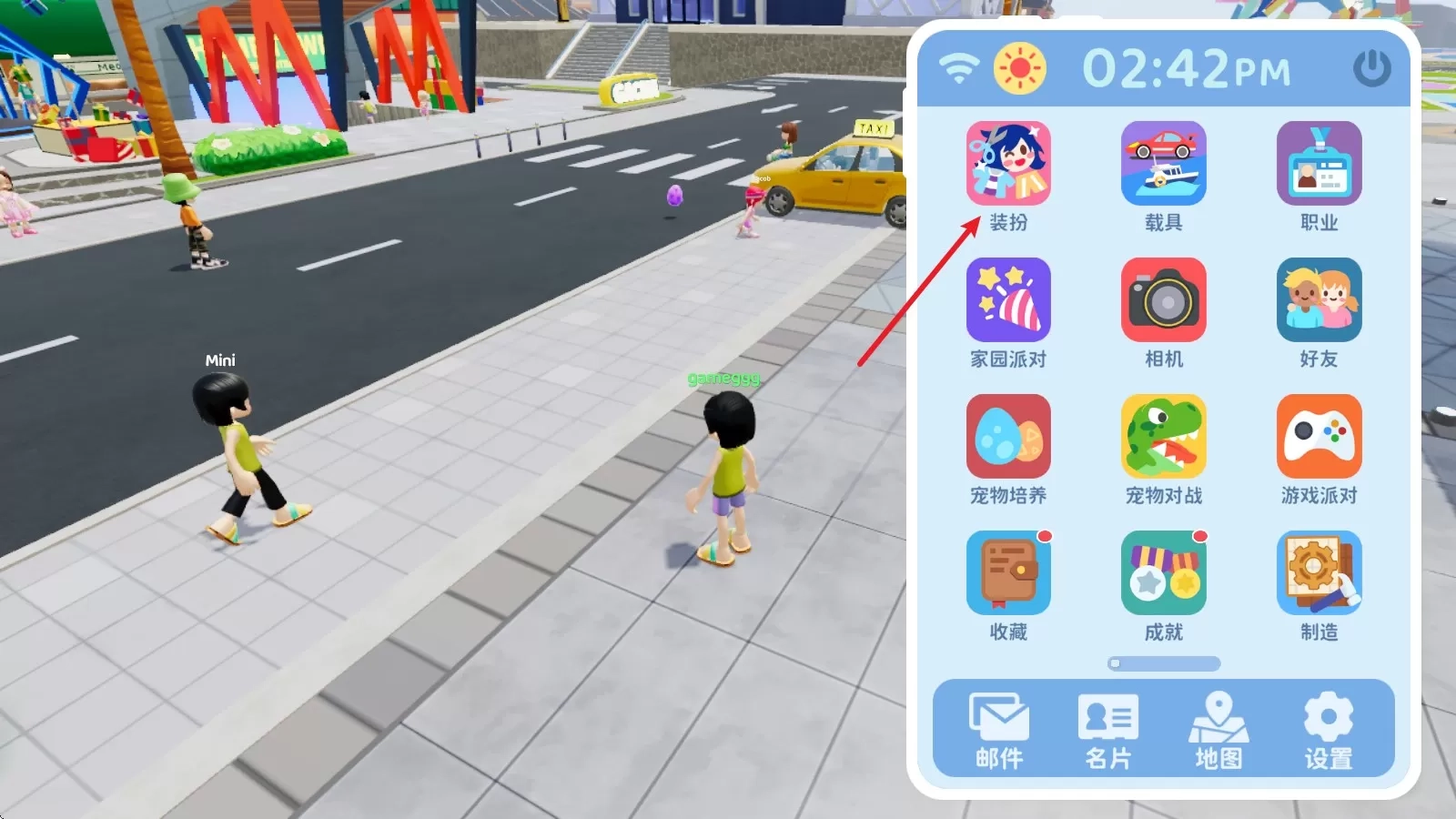 4.可以通过主界面进入不同的功能模块,如家园建设、家具商店、派对模式等。