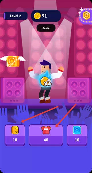3、等级提升后优先升级服装选项,消耗40金币解锁×2金币加成效果,大幅提高收益速度同时丰富角色外观。
