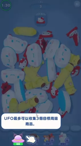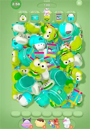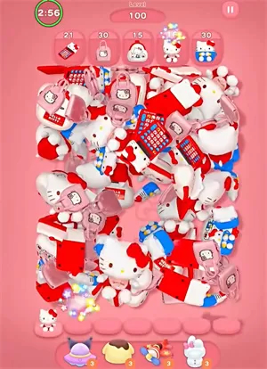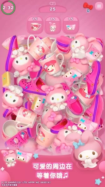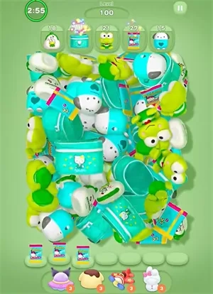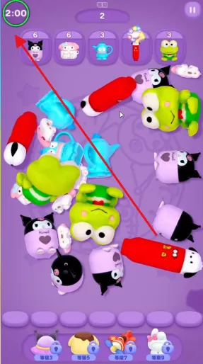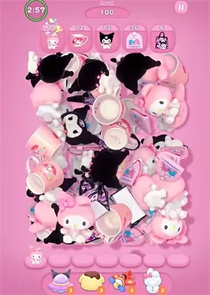 1、当进入游戏关卡后,关卡内会出现大量角色周边,玩家的任务是将这些角色周边消除。