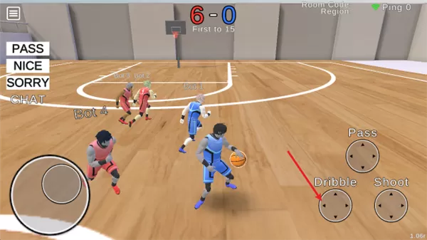 2、持球之后,点击右侧的Dirrble可以进行运球过人。