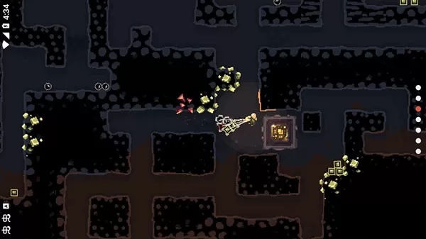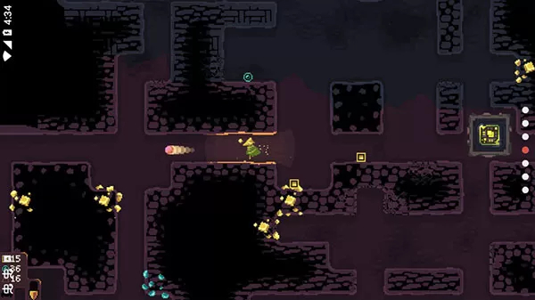 4、按住屏幕左边滑动可以控制角色的移动,按住方向对准墙壁就可以挖矿了。