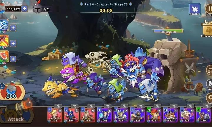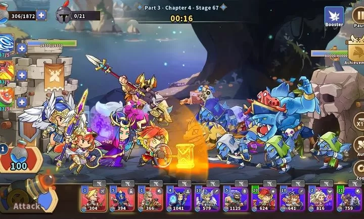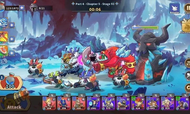 BOSS 防御高,搭配 “穿透射击” 弓箭手与 “百分比伤害” 法师),反复尝试优化阵容,击败后获取稀有奖励。