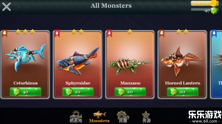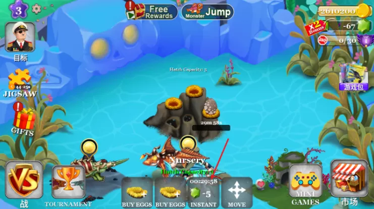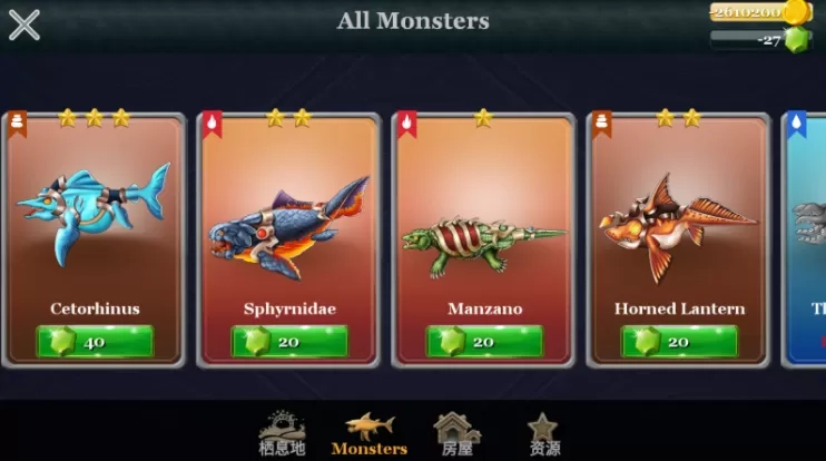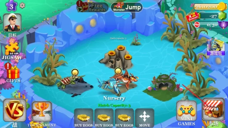 2、在这里可以购买各种海怪进行孵化