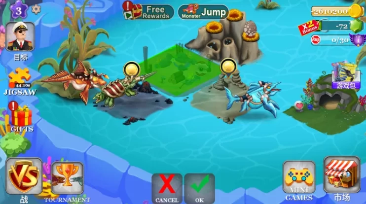 1. 海怪养成与进化玩法:玩家能够对深海生物进行捕捉和驯化,借助投入资源的方式来增强它们的属性,同时还能解锁强大技能。此外,该玩法还支持海怪杂交,促使新物种诞生,进而帮助玩家打造出差异化的战斗策略。