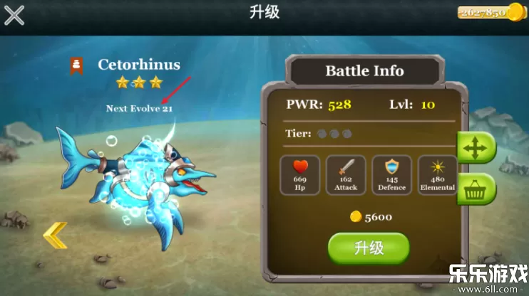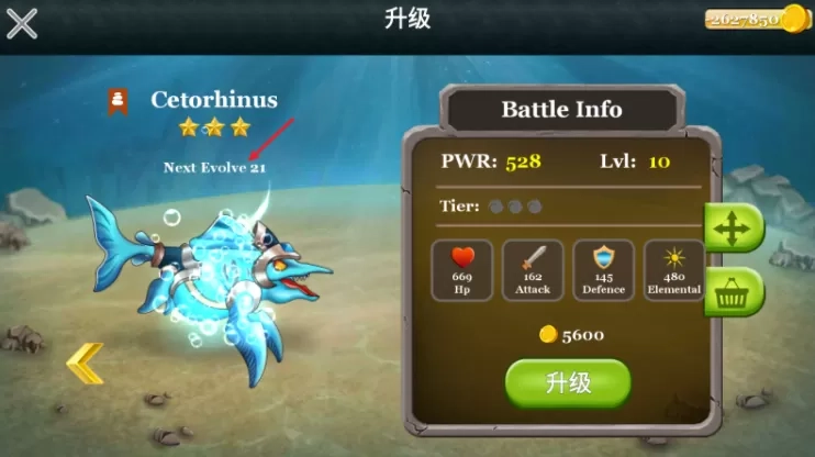 6、点击海怪还能够进行升级,达到一定等级还可以进化