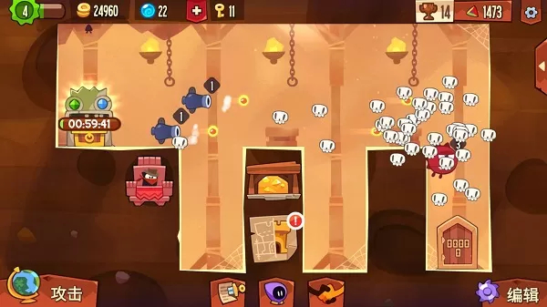 第二阶段融入了COC玩法。在游戏里,我们能够打造专属地牢,守护获取的宝石;也能前往他人地牢,夺取对方资源。与此同时,怎样设计地牢以增加难度,会是你在游戏中花费时间最多之处。当然,并非所有游戏融入COC元素就会成为优秀玩法。这款游戏备受称赞的还有平衡设计,通过星级评定、钥匙孔选择、钥匙数量、陷阱血量以及通关后获取宝石的概率等方面,提升游戏趣味性,让玩家更易获得良好体验。总体来讲,游戏借鉴了COC的精华,并完美融入自身,带来的体验绝非简单的1 + 1 = 2。而出色的平衡设计以及对技术的要求(部分玩家可能会为此头疼),相信会为你带来独特的玩法体验。